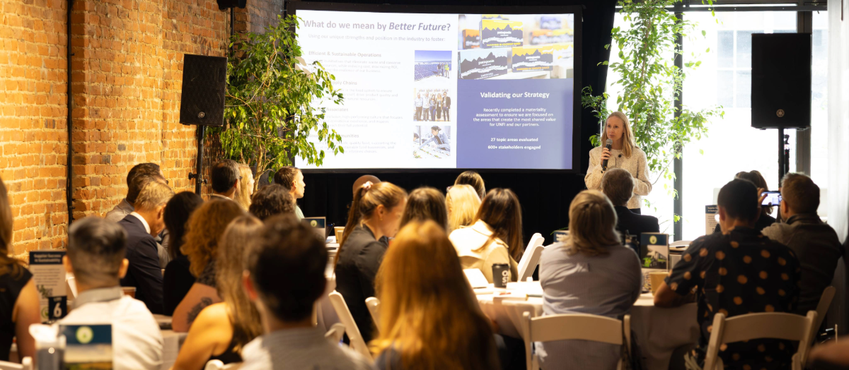 As part of Climate Week NYC, UNFI convened experts from across our customer and supplier network to explore how shared sustainability goals can drive common business goals – including supply chain resilience, operational efficiency, brand differentiation, and consumer loyalty. The summit, held in partnership with Regen House, focused on advancing climate solutions through collaboration across the food industry.
